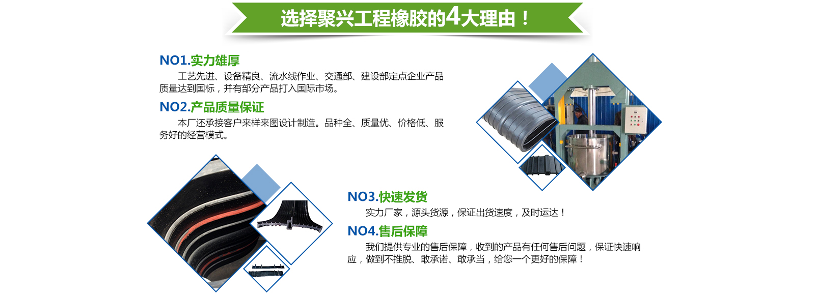 衡水聚興工程橡膠有限公司,位于河北省衡水市榕花街,石德高速,石德鐵路,京九鐵路在此交匯,106國道,石黃高速由境內(nèi)穿過。得天獨(dú)厚的地理位置為公司的發(fā)展創(chuàng)造了良好的交通條件。本廠工藝先進(jìn)、設(shè)備精良、流水線作業(yè)、交通部、建設(shè)部定點(diǎn)企業(yè)產(chǎn)品質(zhì)量達(dá)到國標(biāo),并有部分產(chǎn)品打入國際市場、我廠主要生產(chǎn)止水帶、橋梁支座、輸送帶、伸縮縫、托滾高壓膠管,并按圖加工各種橡膠制品。同時(shí)本廠還承接客戶 ...